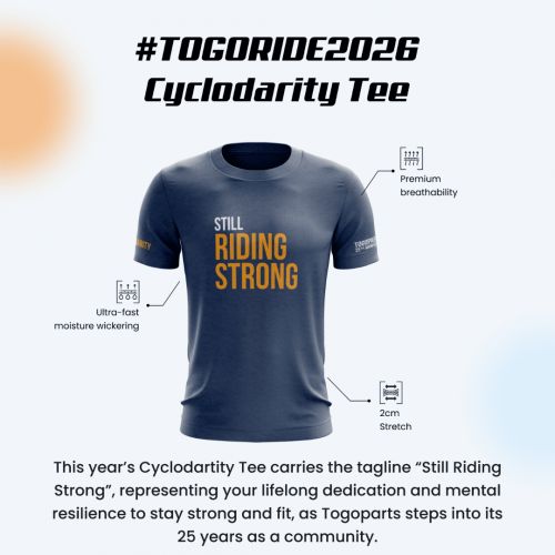 • Purchase #TOGORIDE2026 Cyclodarity Tee & Finisher Medal