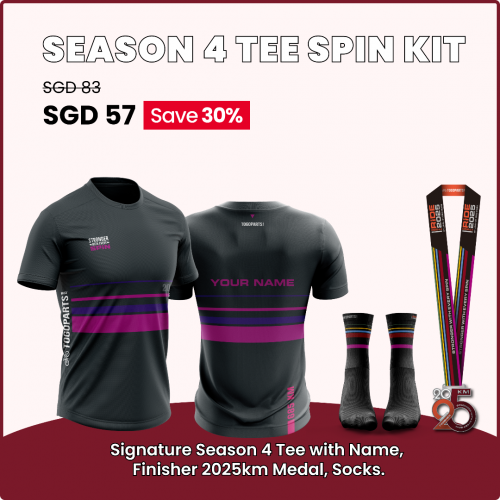 Please note that this tee does not come with customised names. To add your name to the tee, you can consider purchasing the Season Tee Spin Kit or add SGD 8 for customisation, and your name will be added to all Jerseys and Seasonal Tees (Seasons 1-4) bought this year.